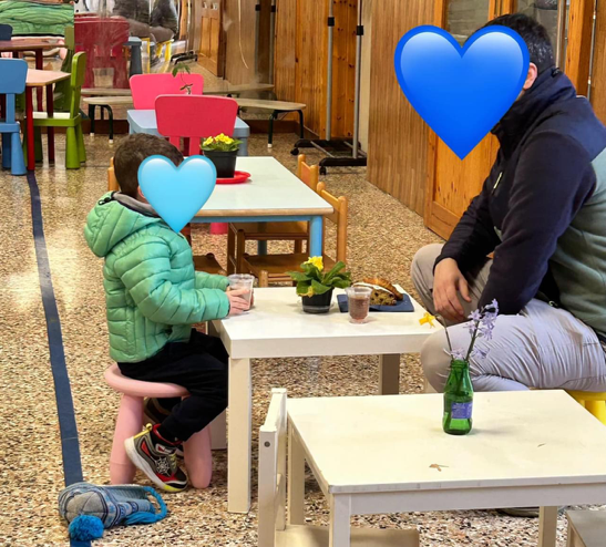 ... i tavolini hanno dato la possibilità di uno spazio di riservatezza e confidenza ad ogni bambino e al suo papà;