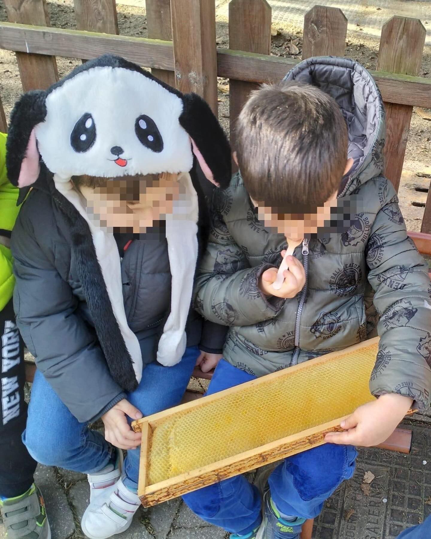 Con tanto interesse e curiosità hanno imparato chi è l’Ape Regina tra moltissime api operaie e come si veste l’apicoltore quando cura le api. Hanno osservato, annusato e toccato un favo vero.