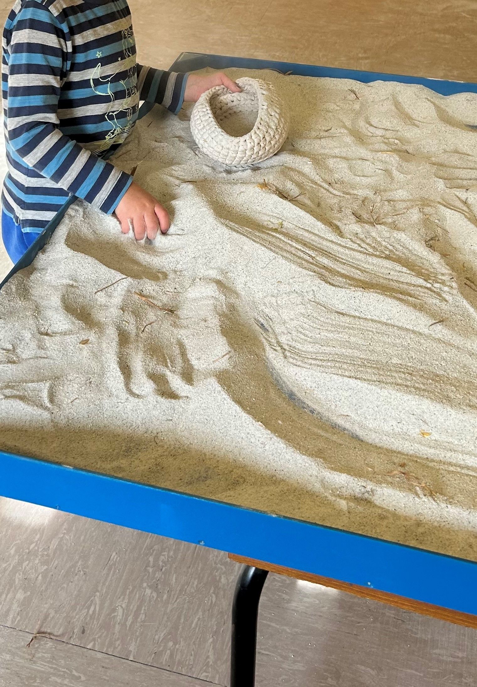 Durante una formazione a distanza nel periodo del lockdown, la coordinatrice ha conosciuto lo spazio dello “strandgut”, o stanza della sabbia, ideata a Berlino da Ute Strub, di approccio pikleriano, e ne è rimasta affascinata.
