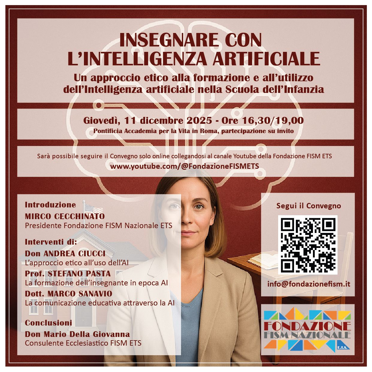 La conclusione sarà affidata a don Mario Della Giovanna, Consulente Ecclesiastico FISM ETS, che offrirà uno sguardo pastorale e valoriale sul ruolo dell’educazione in un contesto tecnologico in rapido cambiamento.