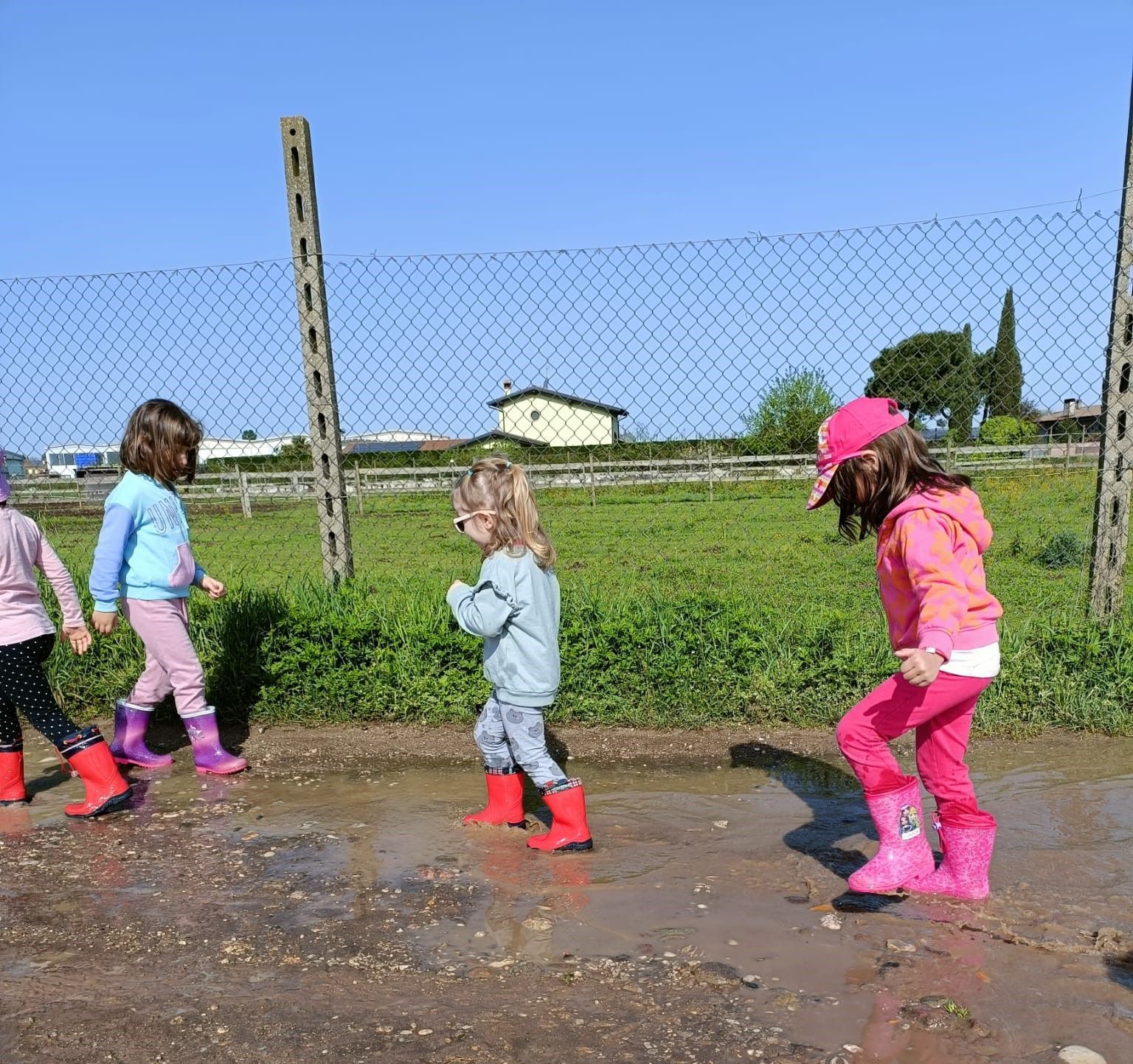 Ecco che ai bambini sbocciano tante idee: vogliono saltare nelle pozzanghere, andare a vedere gli occhi dei cavalli del Bega’s Ranch, andare ad acquistare il pane al negozio di Miria, Roberta e Daniela, cercare la loro casa tra le vie di Rosegaferro, pranzare in giardino, rincorrere le farfalle e raccogliere mazzi di erbe spontanee, salutare chi si incontra per strada, …