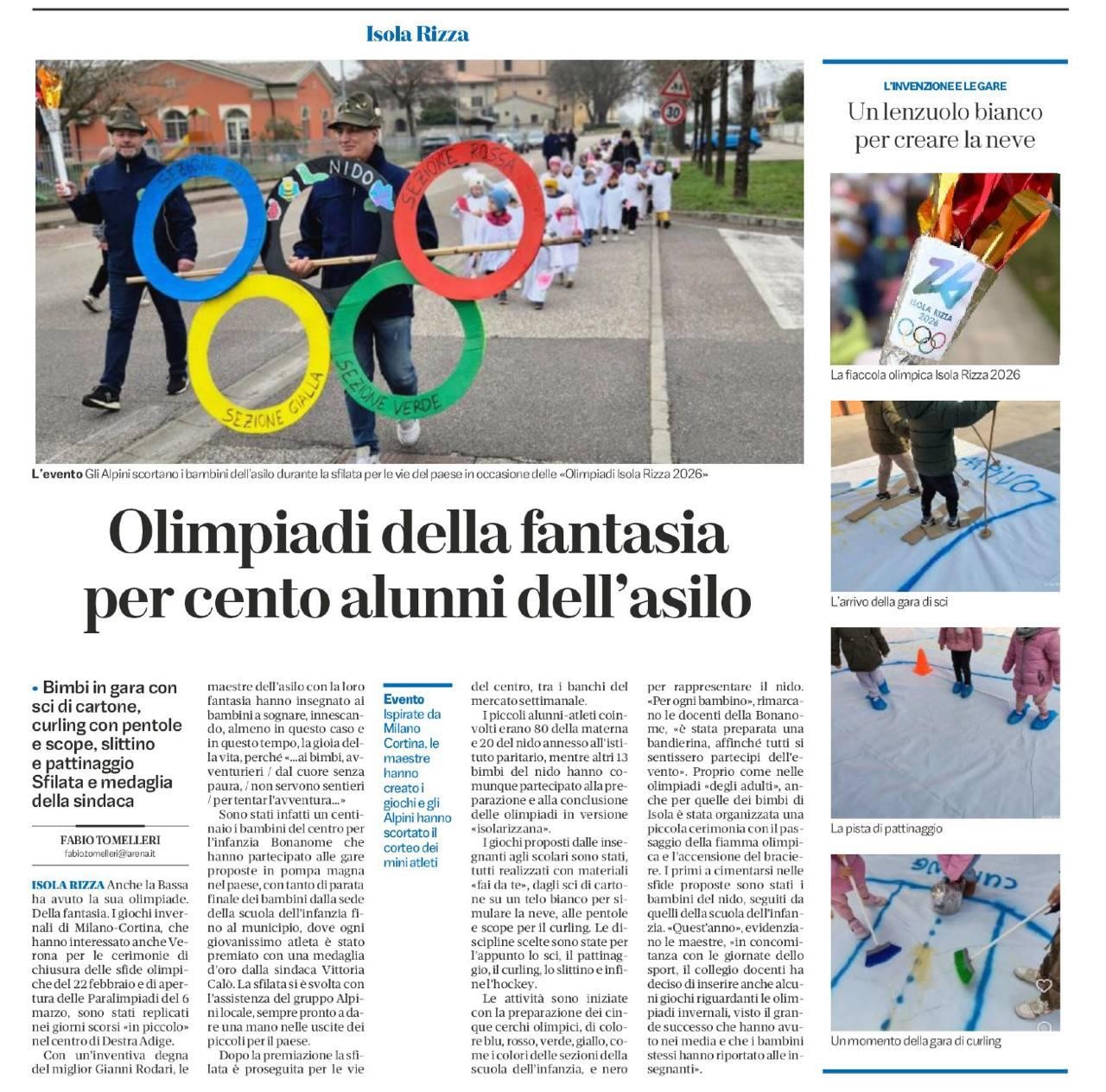 I bambini iniziate le attività hanno riportato alle insegnanti che in TV vedevano tante gare sulla neve e da qui è nata l’idea di fare anche a scuola le olimpiadi proprio per dare valore alle proposte e iniziative portate dai bambini stessi.