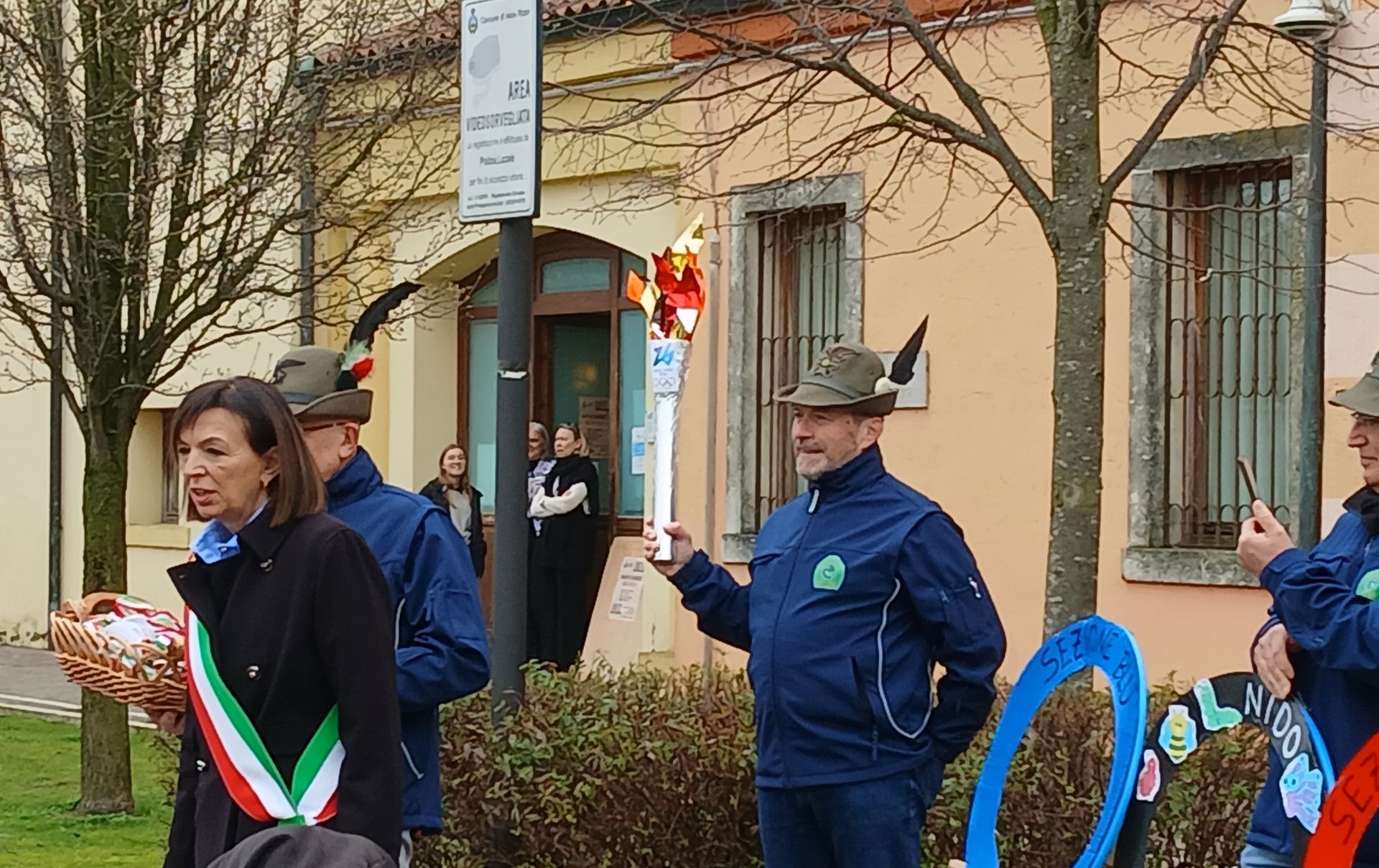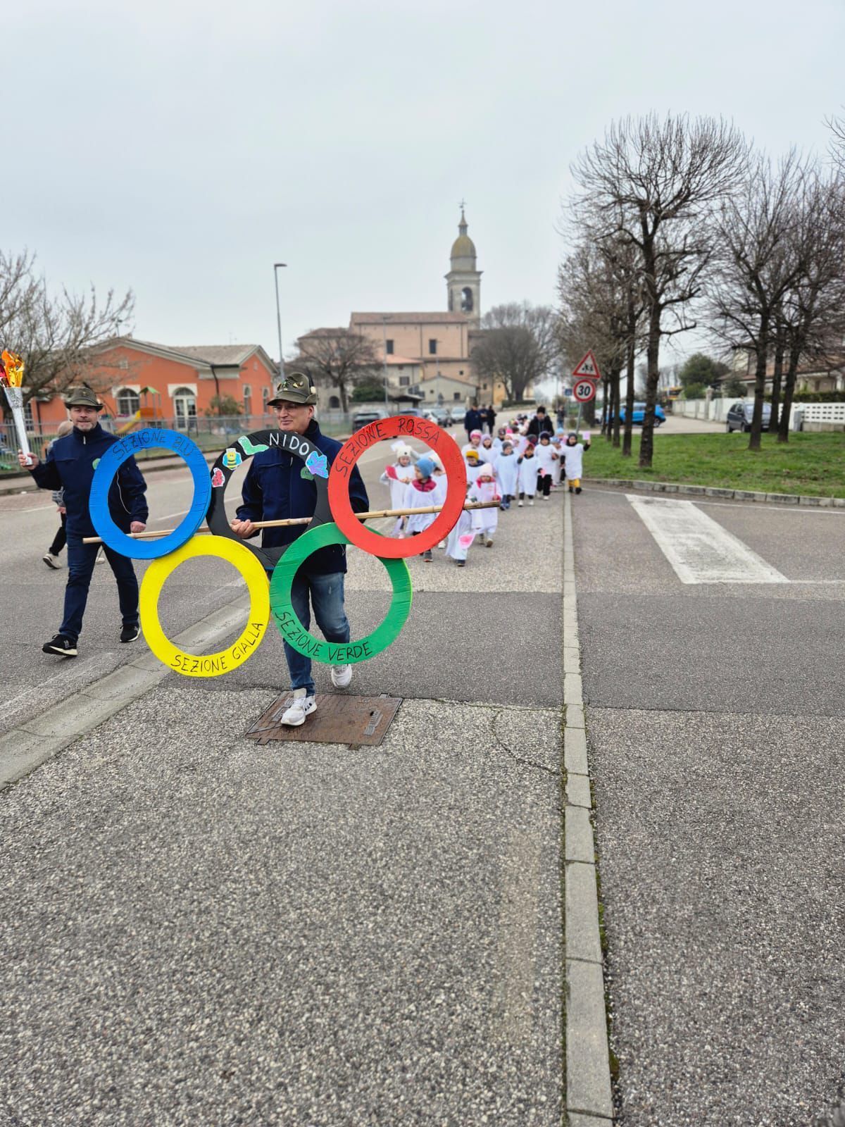 Al termine delle olimpiadi, accompagnati dagli Alpini che ci sostengono sempre nelle nostre uscite in paese, siamo andati dal sindaco Vittoria Calo’ che ci ha premiati con le medaglie d’oro e infine abbiamo terminato con lei la sfilata in centro paese.
