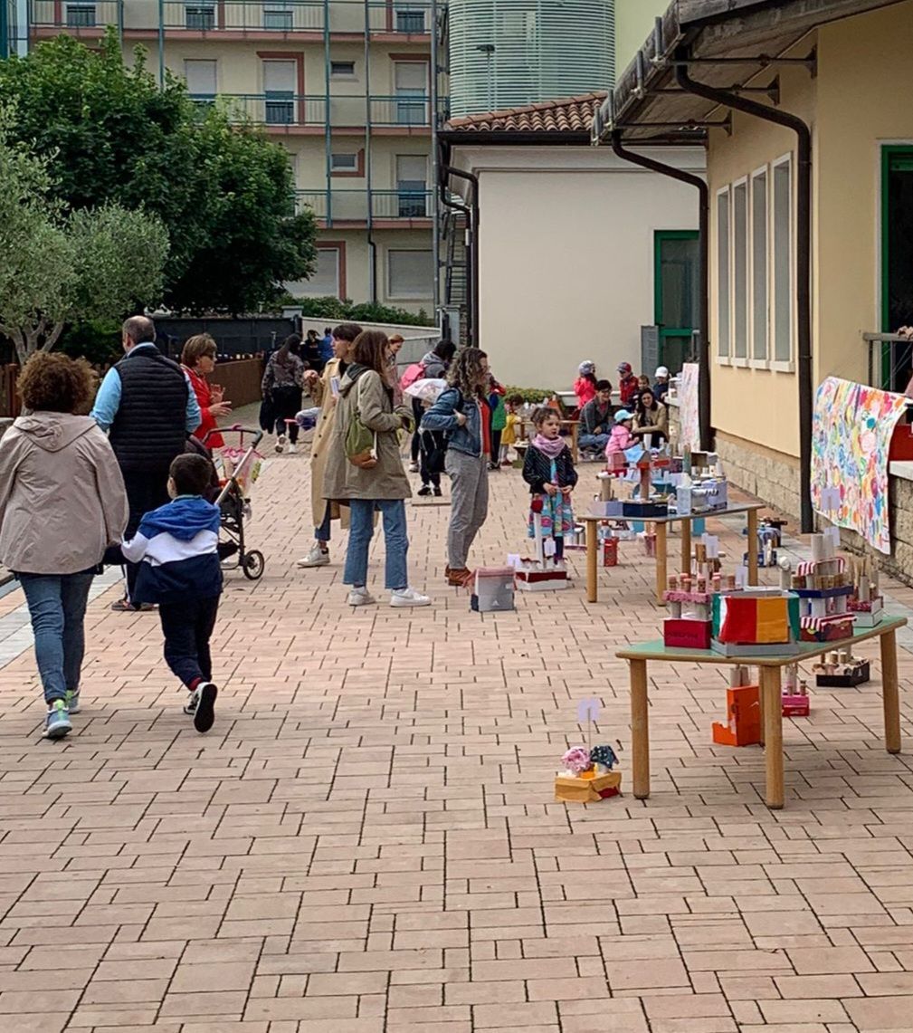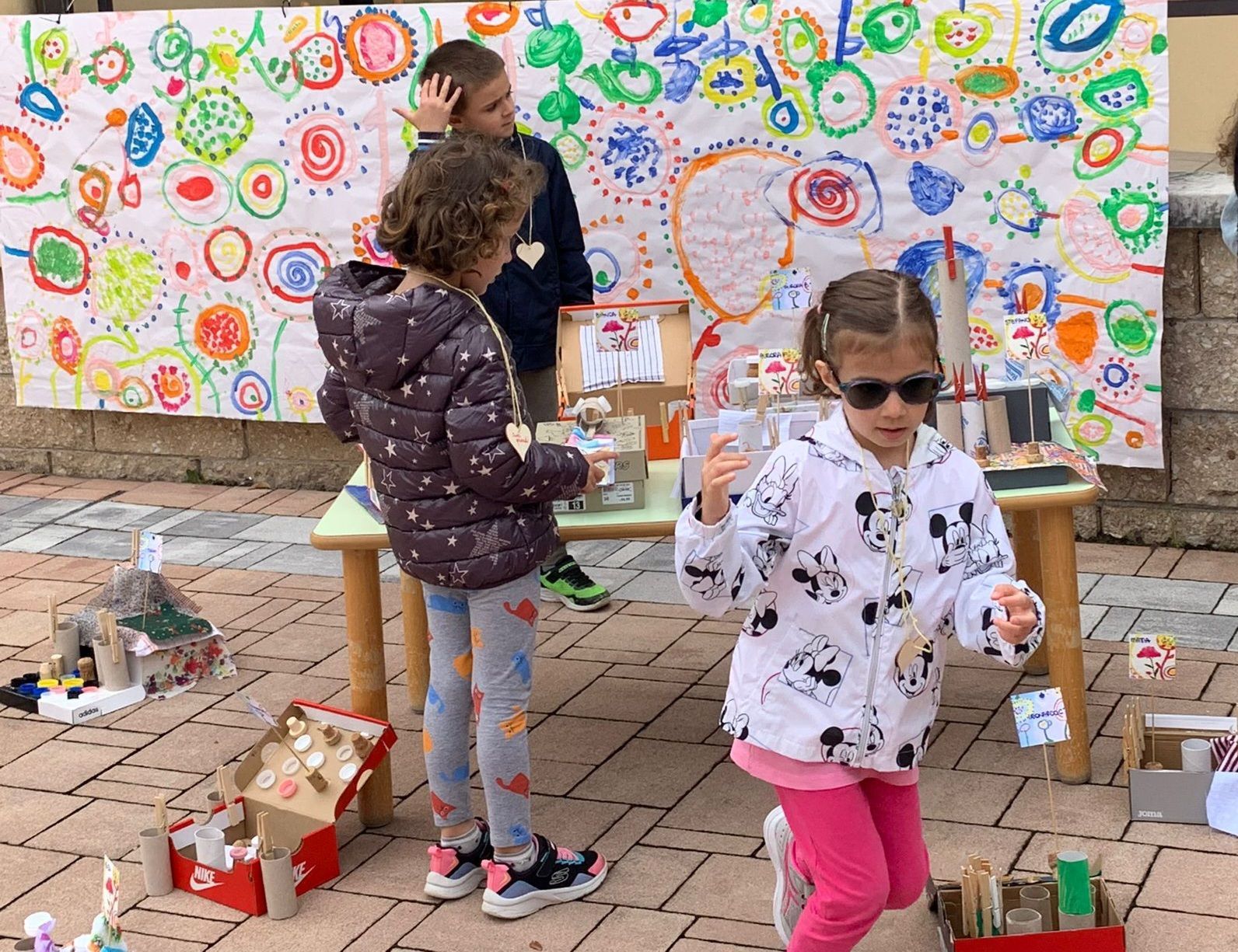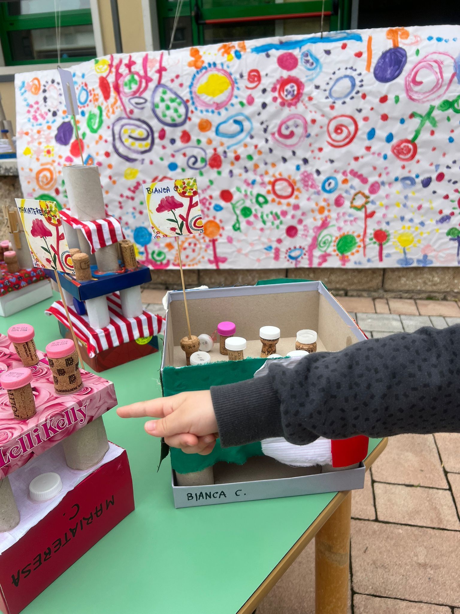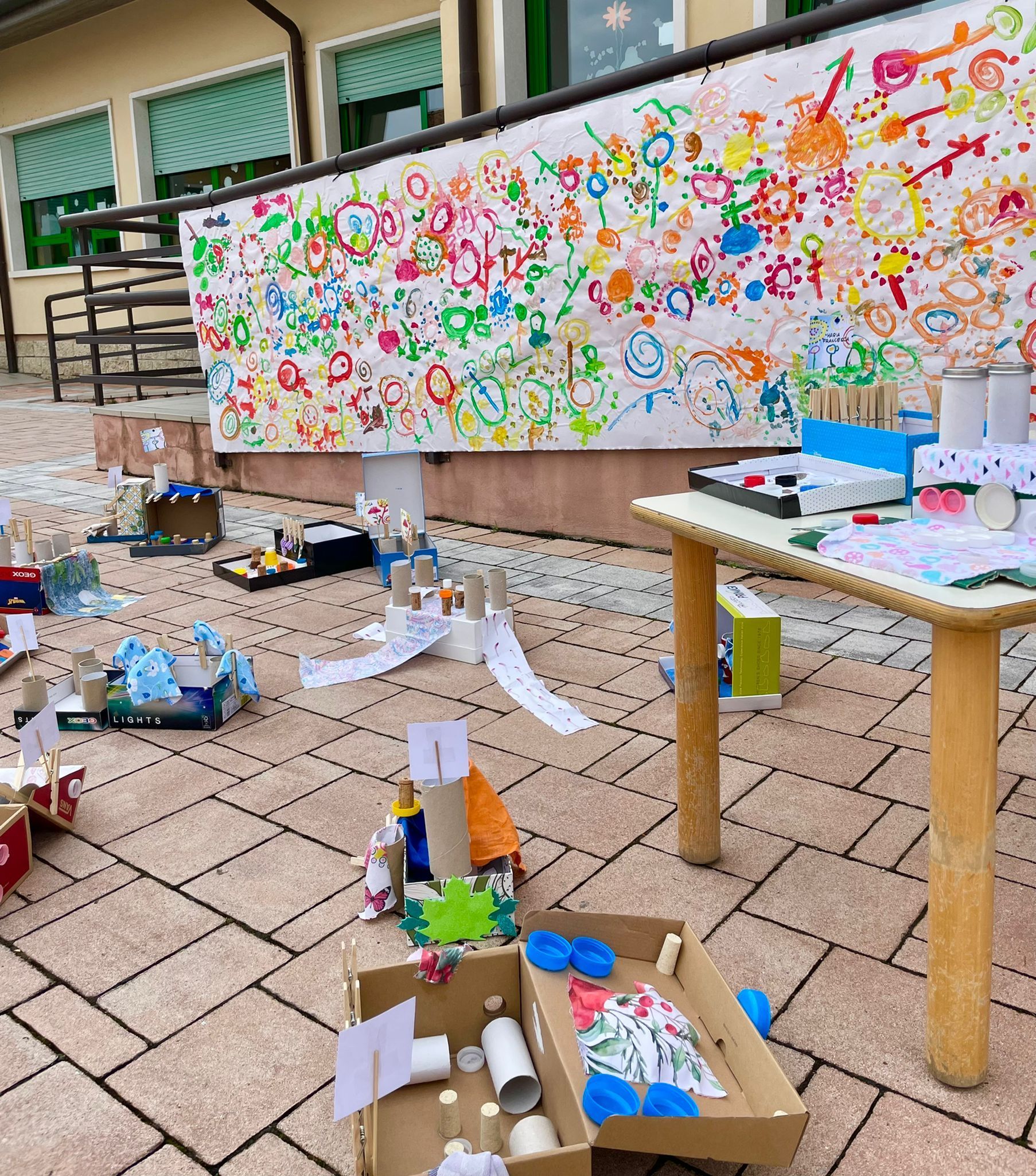 E’ nata così l’idea di esporre tutte le opere dei bambini nel cortile della nostra scuola e ciascun bambino ha saputo raccontare nel dettaglio il suo pensiero, la sua creazione a mamma, papà, nonni e a tutte le numerose persone che sono passate a vedere.