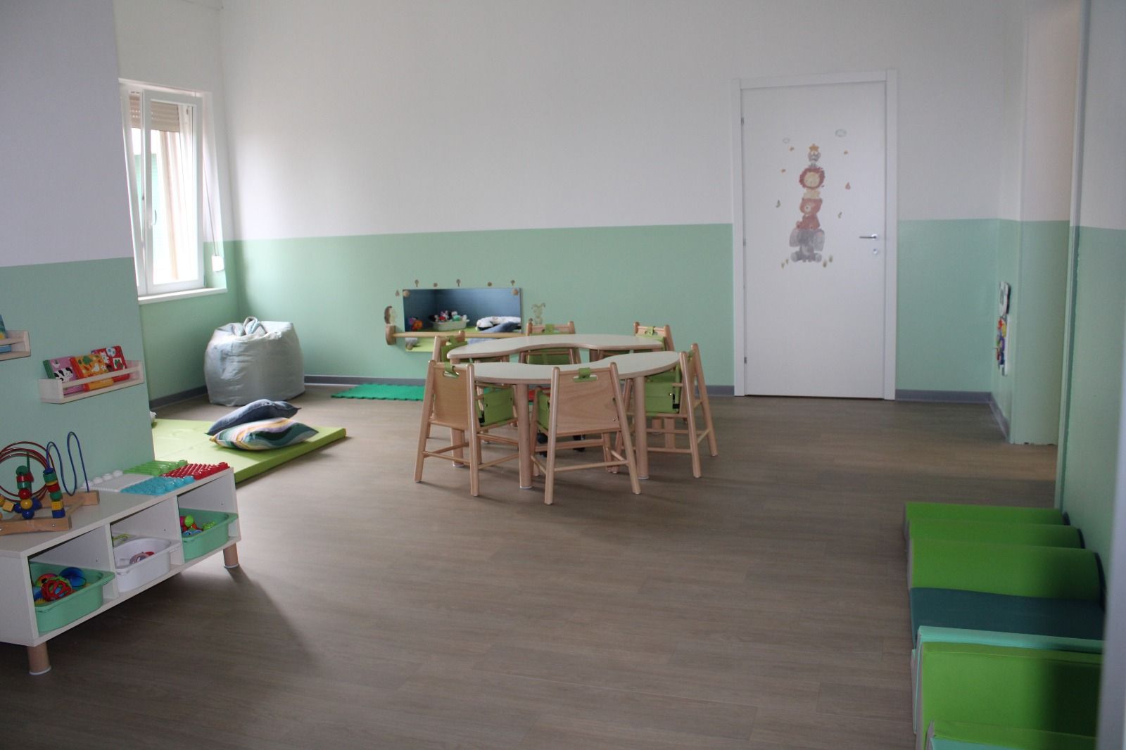 Per rendere possibile questa nuova realtà è stato necessario un grande lavoro di riorganizzazione e ristrutturazione: i bambini della scuola dell’infanzia sono stati trasferiti al primo piano, dotato di ampi spazi e di un bagno rinnovato e ampliato, mentre al piano terra si è intervenuti con una ristrutturazione completa: rifacimento del pavimento, nuove pareti e la realizzazione di un giardino recintato dedicato ai piccoli del nido.