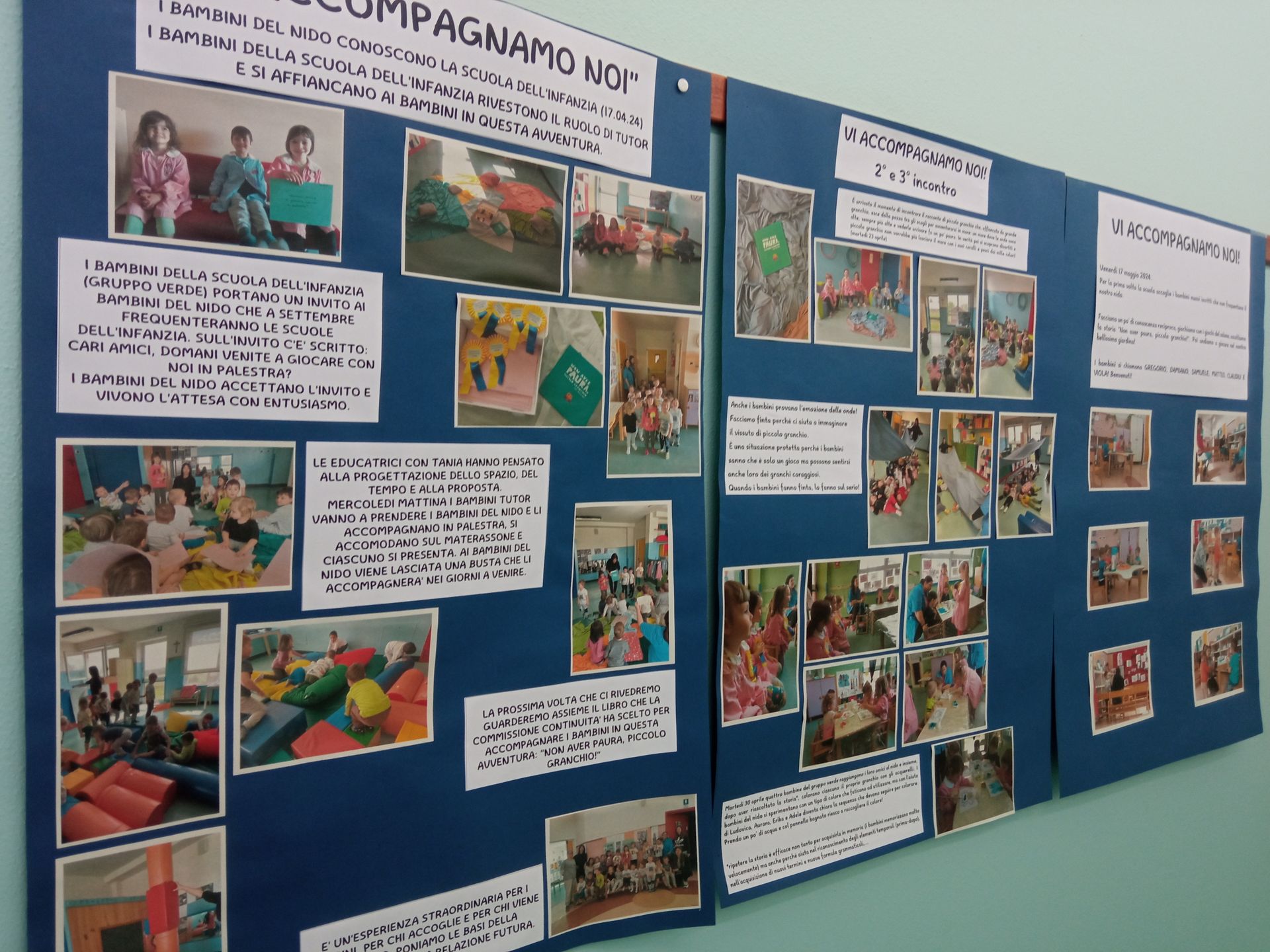 I bambini sono stati accompagnati nella novità anche dagli adulti di cui si fidano: le educatrici e le insegnanti hanno ipotizzato una serie di appuntamenti che si sono realizzati nelle giornate più adatte all'incontrarsi negli spazi del nido, negli spazi della scuola dell'infanzia e negli spazi esterni.